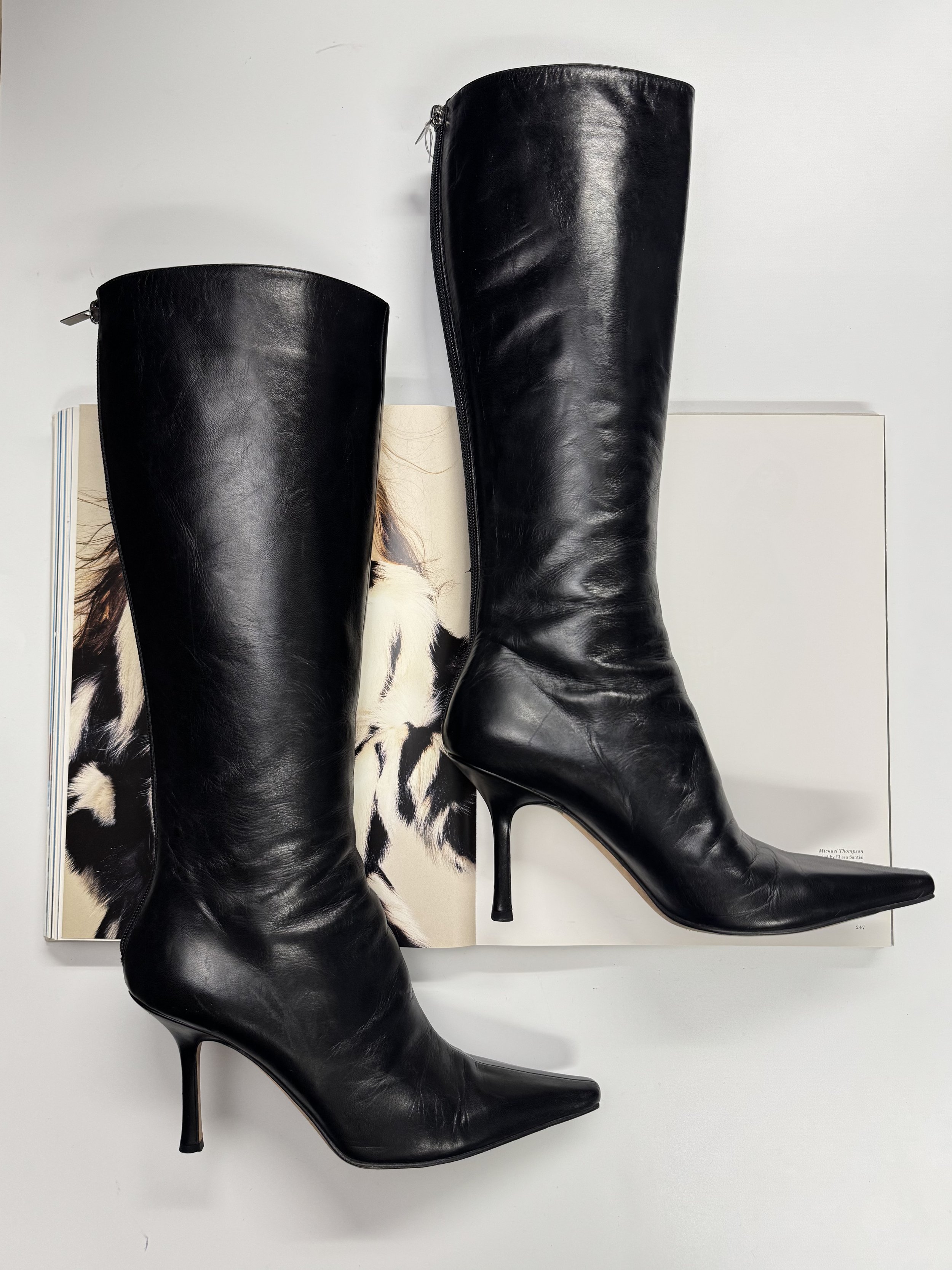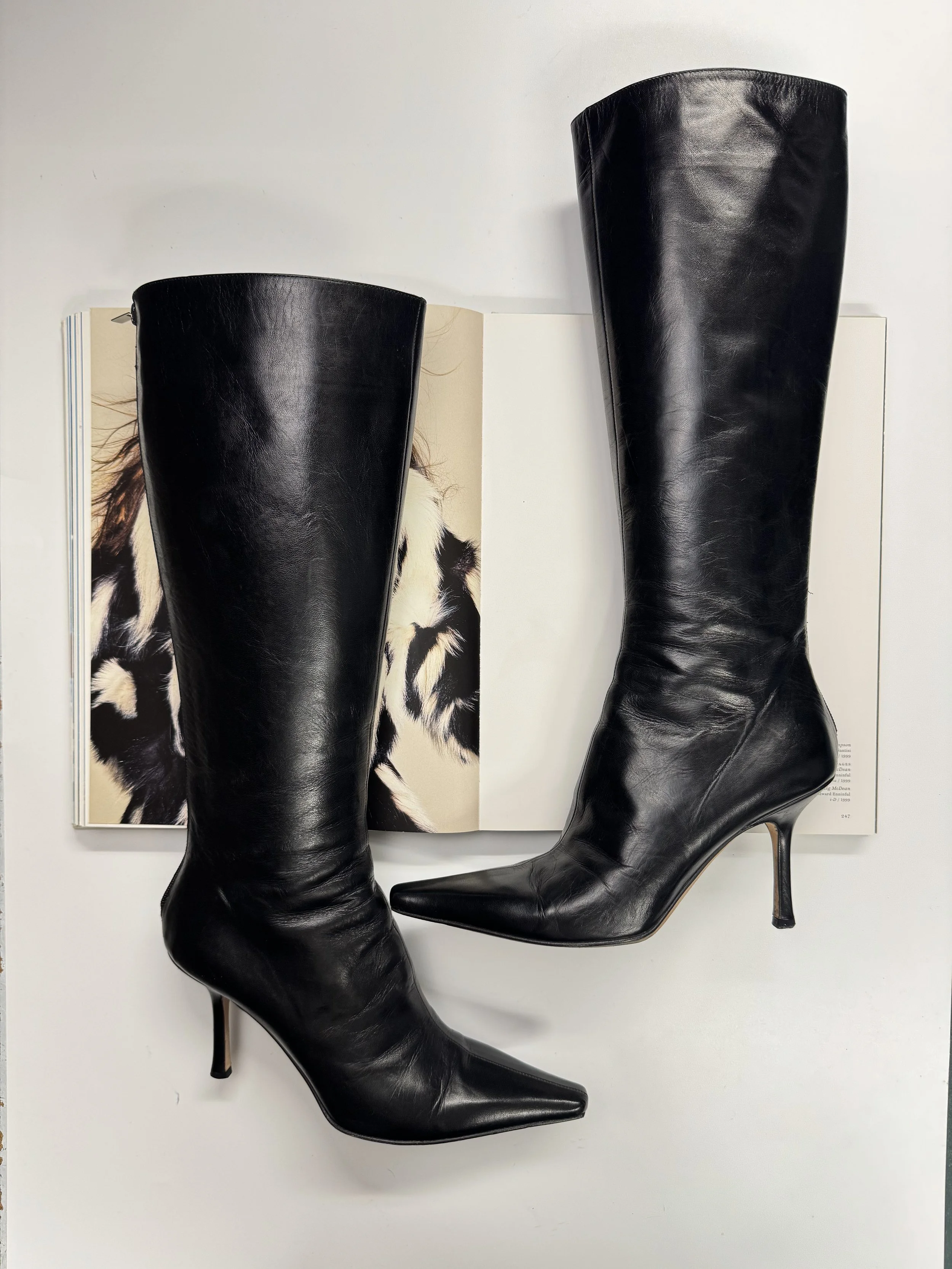 Incredible vintage Jimmy Choo grey lizard pointed toe boots with zip closure.