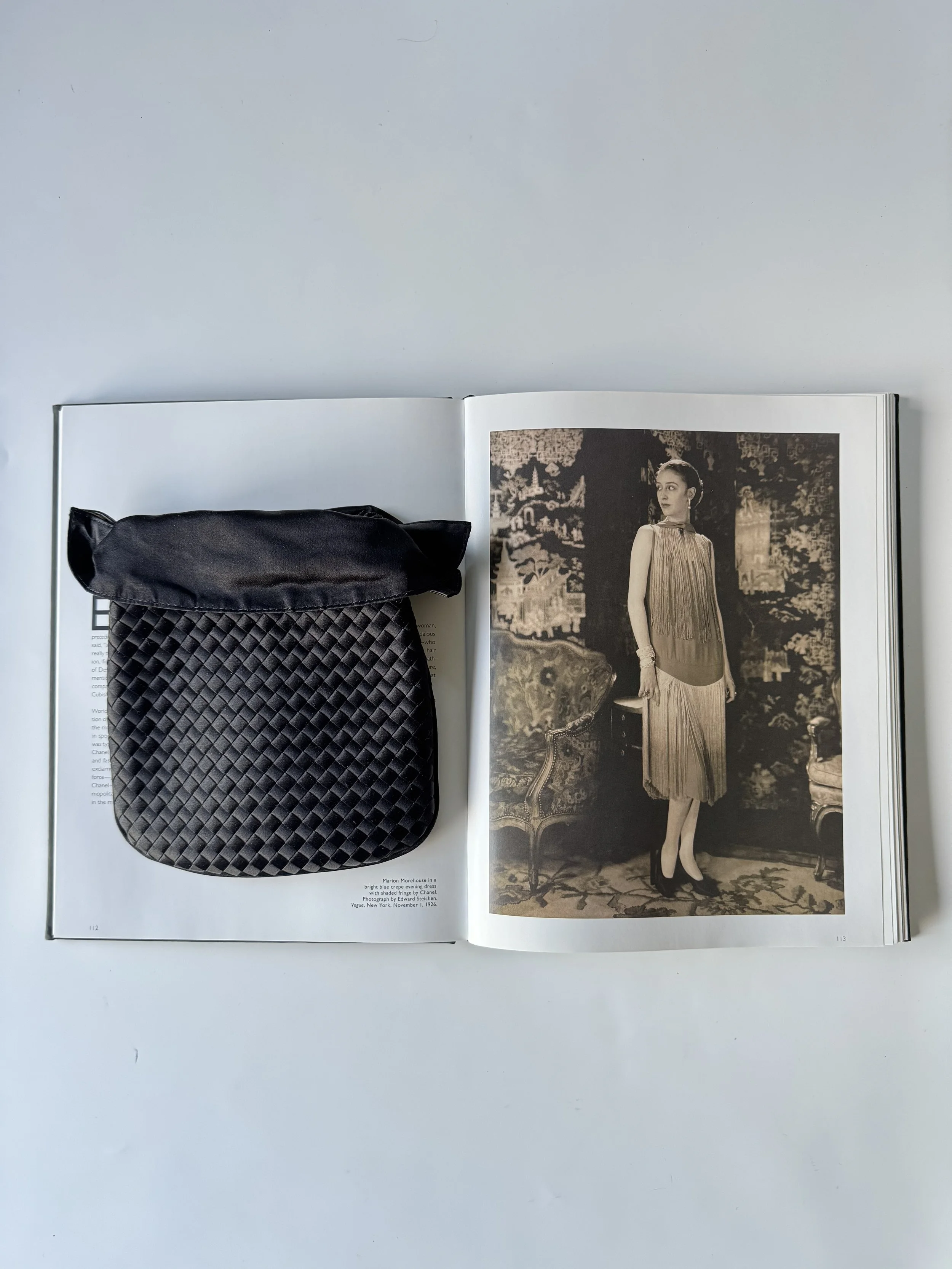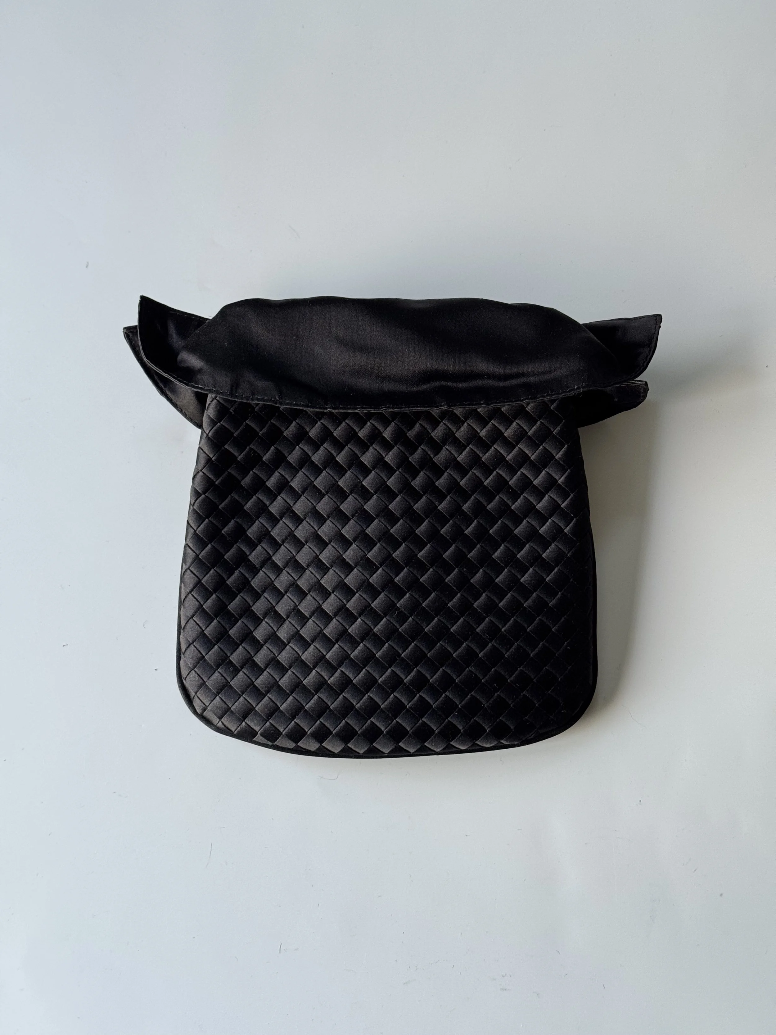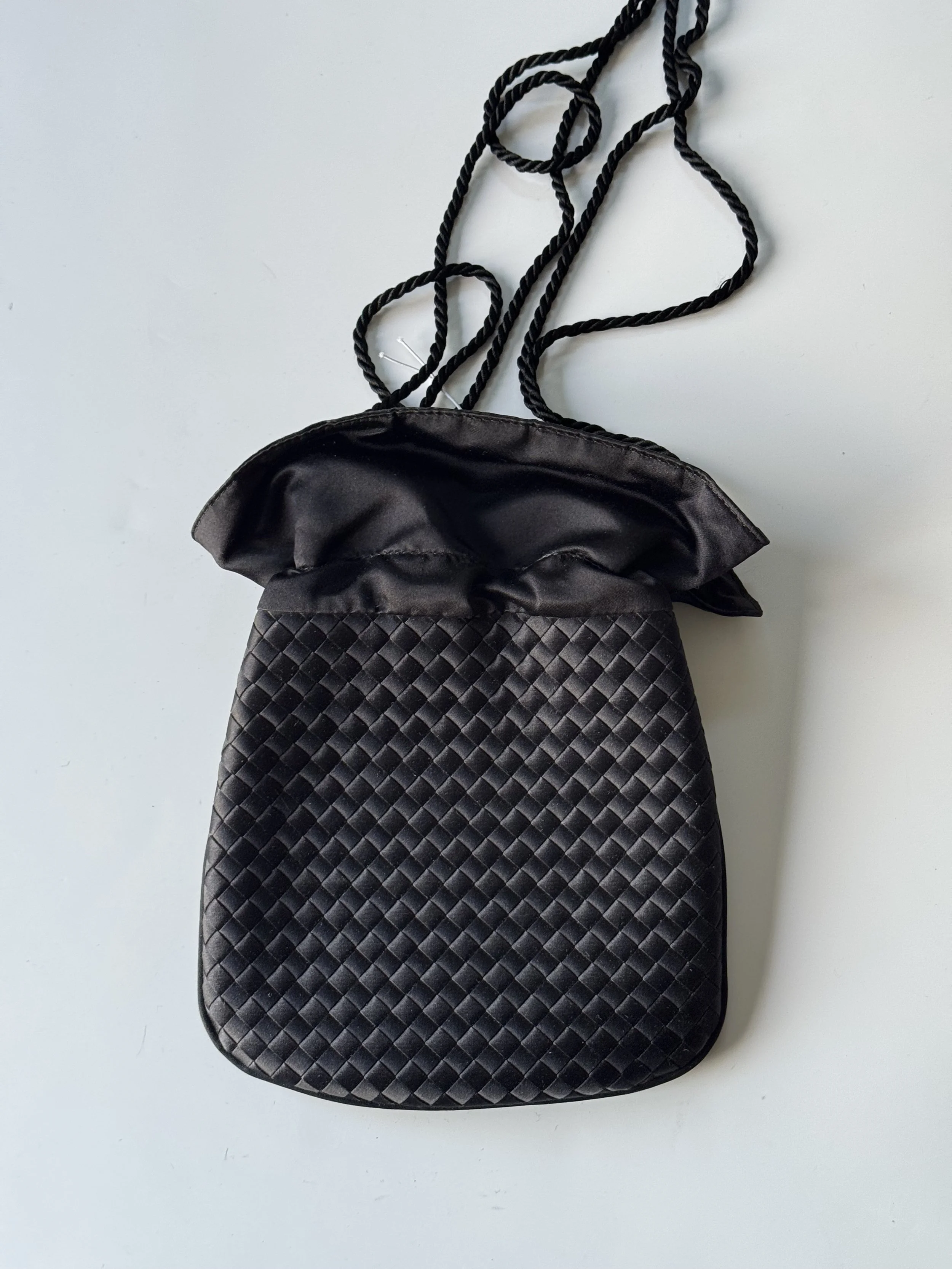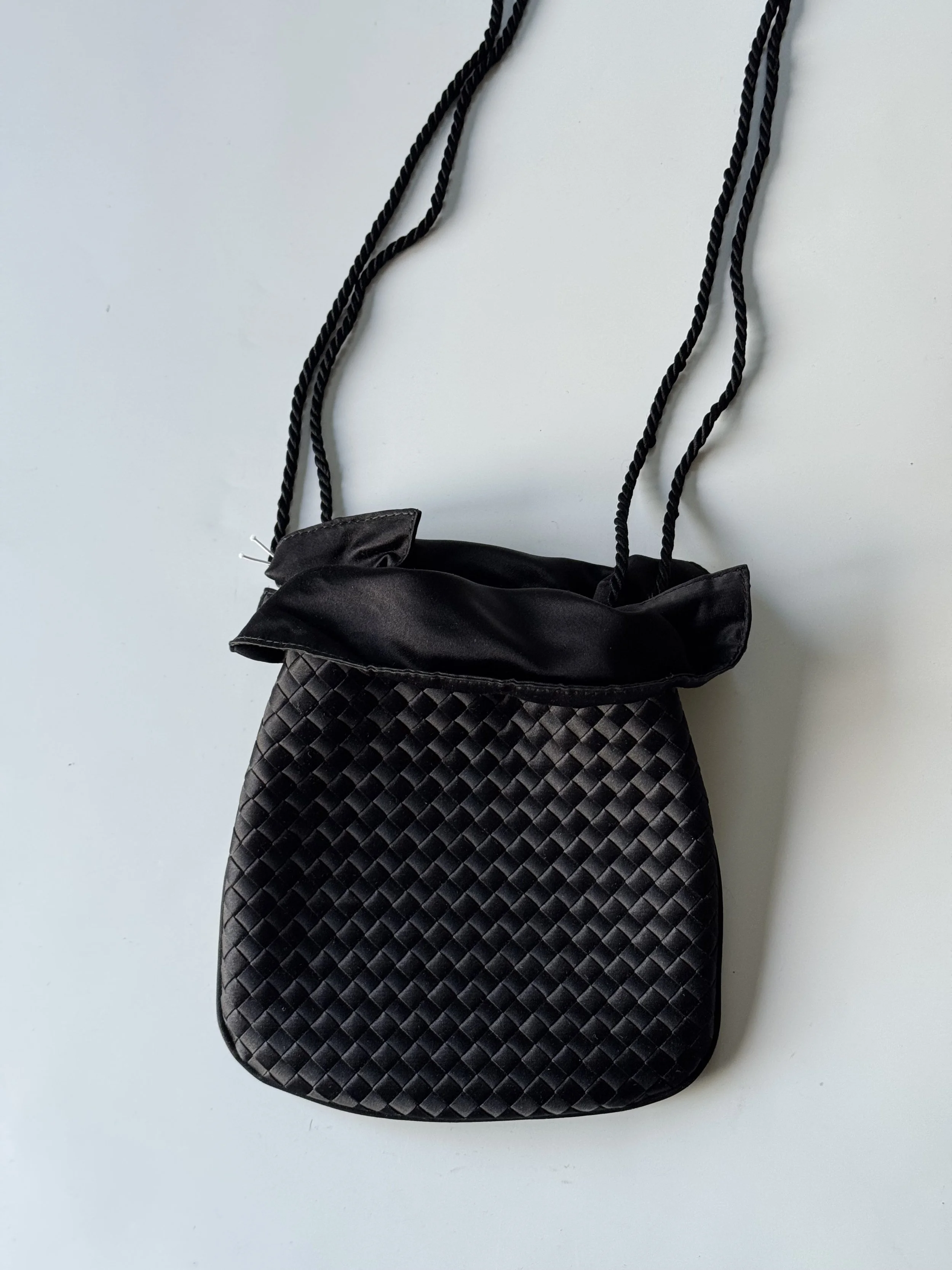 Champagne satin shoulder bag.